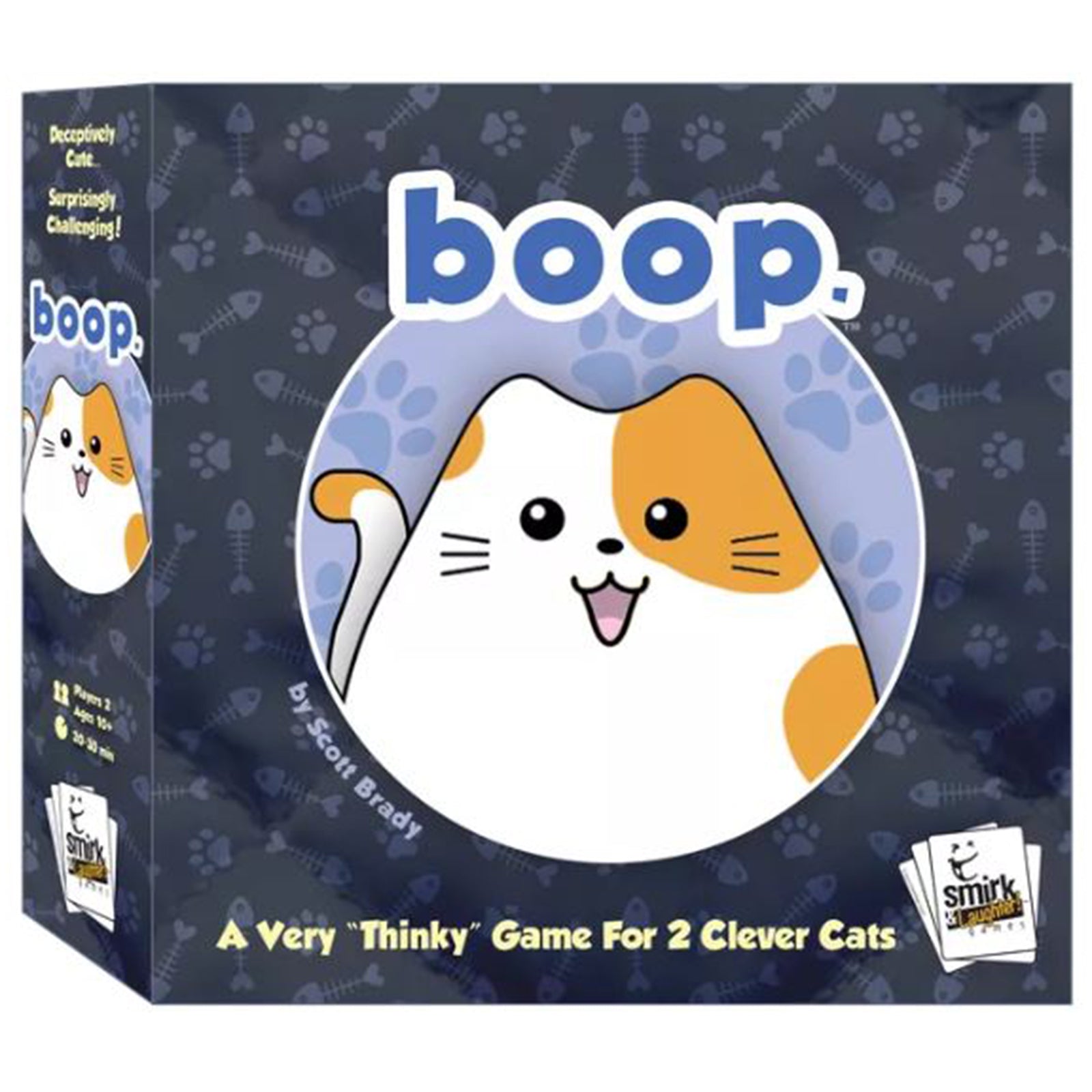 Every time you place a kitten on the bed, it goes “boop.” Which is to say that it pushes every other kitten on the board one space away. Line up three kittens in a row to graduate them into cats… and then, get three cats in a row to win.