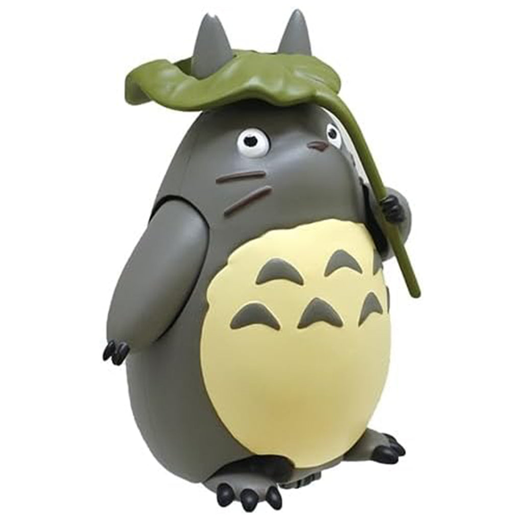 - Totoro holds a leaf above his head, capturing an iconic and playful pose from the film