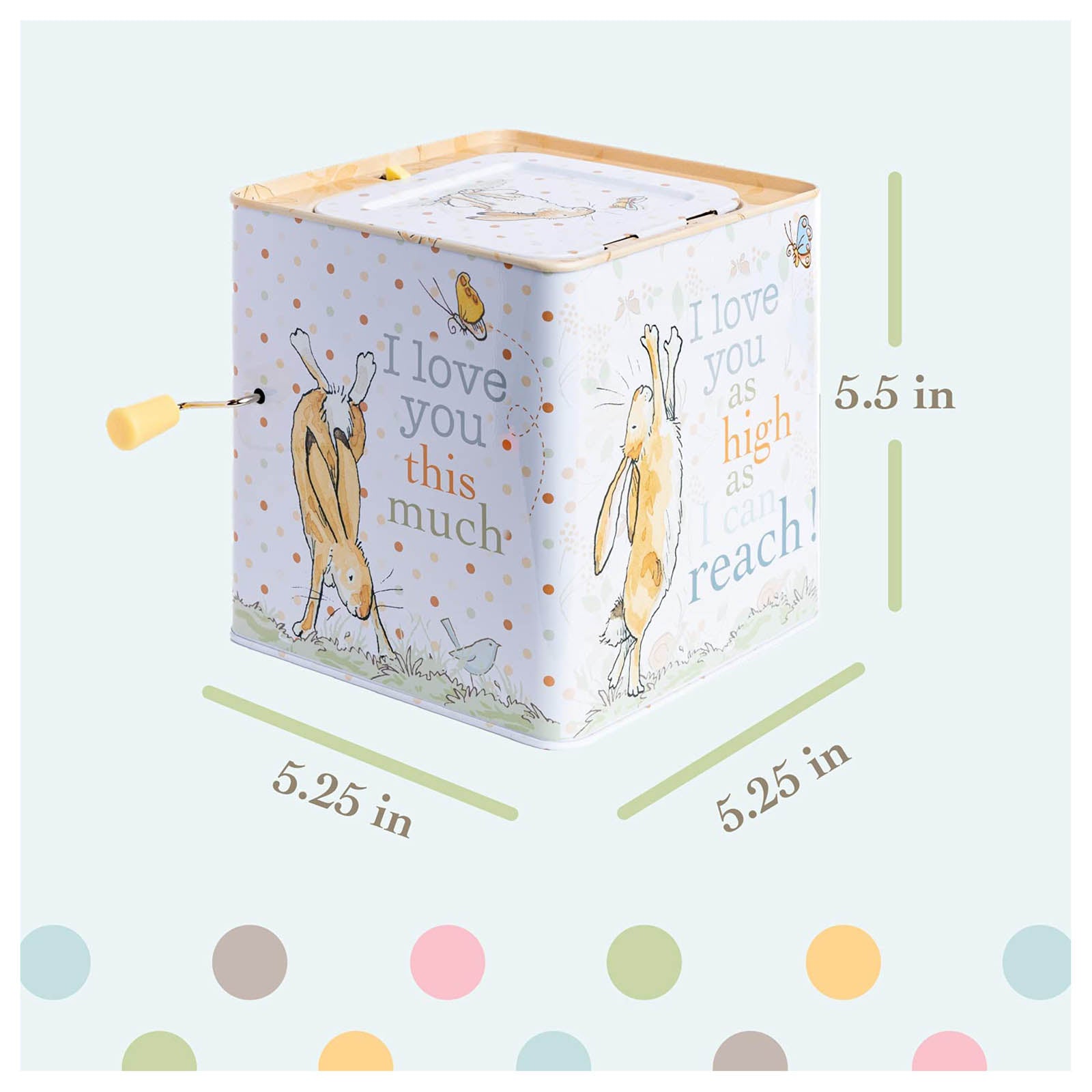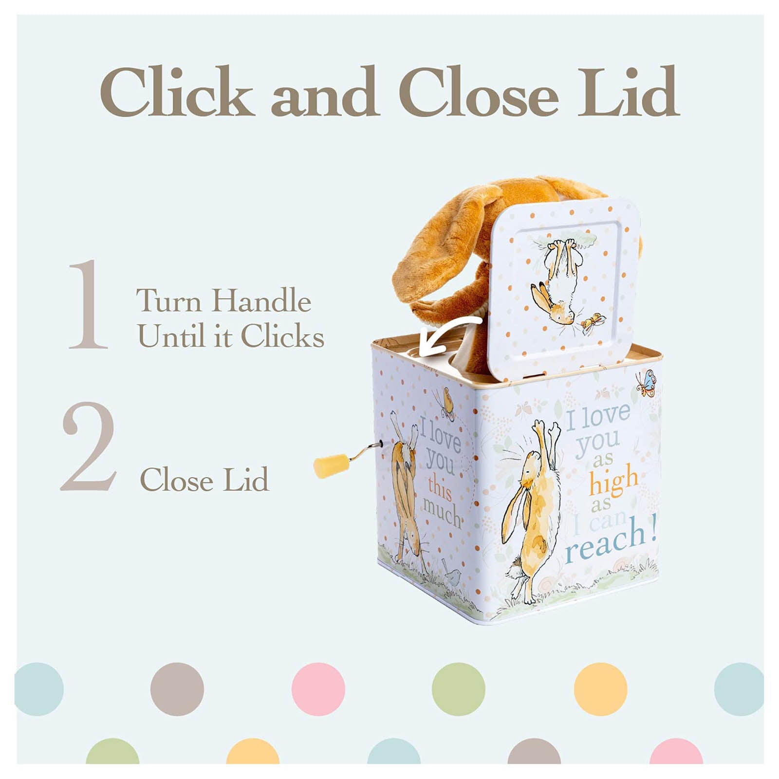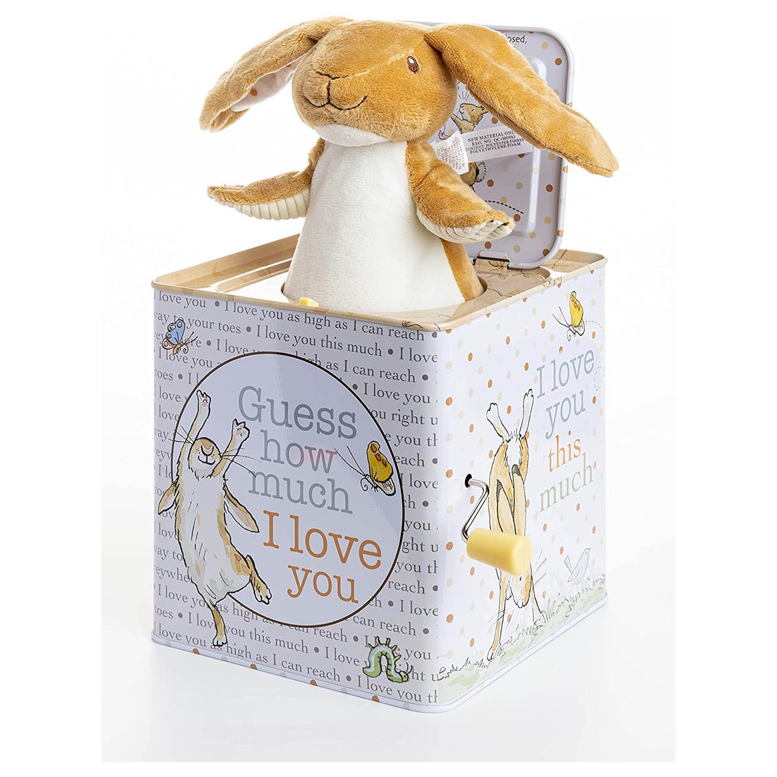 This is your classic jack in the box with the traditional music but Guess How Much I Love You themed!