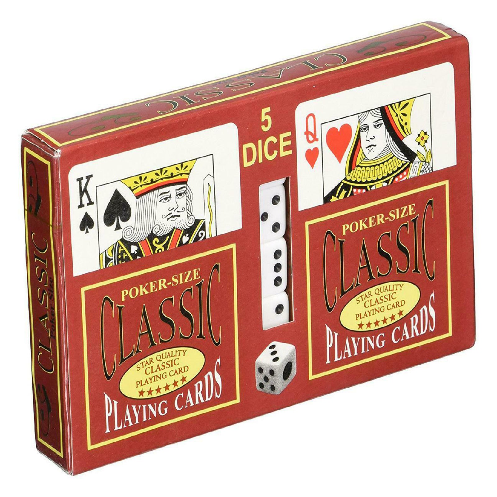 This is Hansen Classic Two Poker Decks With Five Dice Set made by the good people over at John Hansen Games.