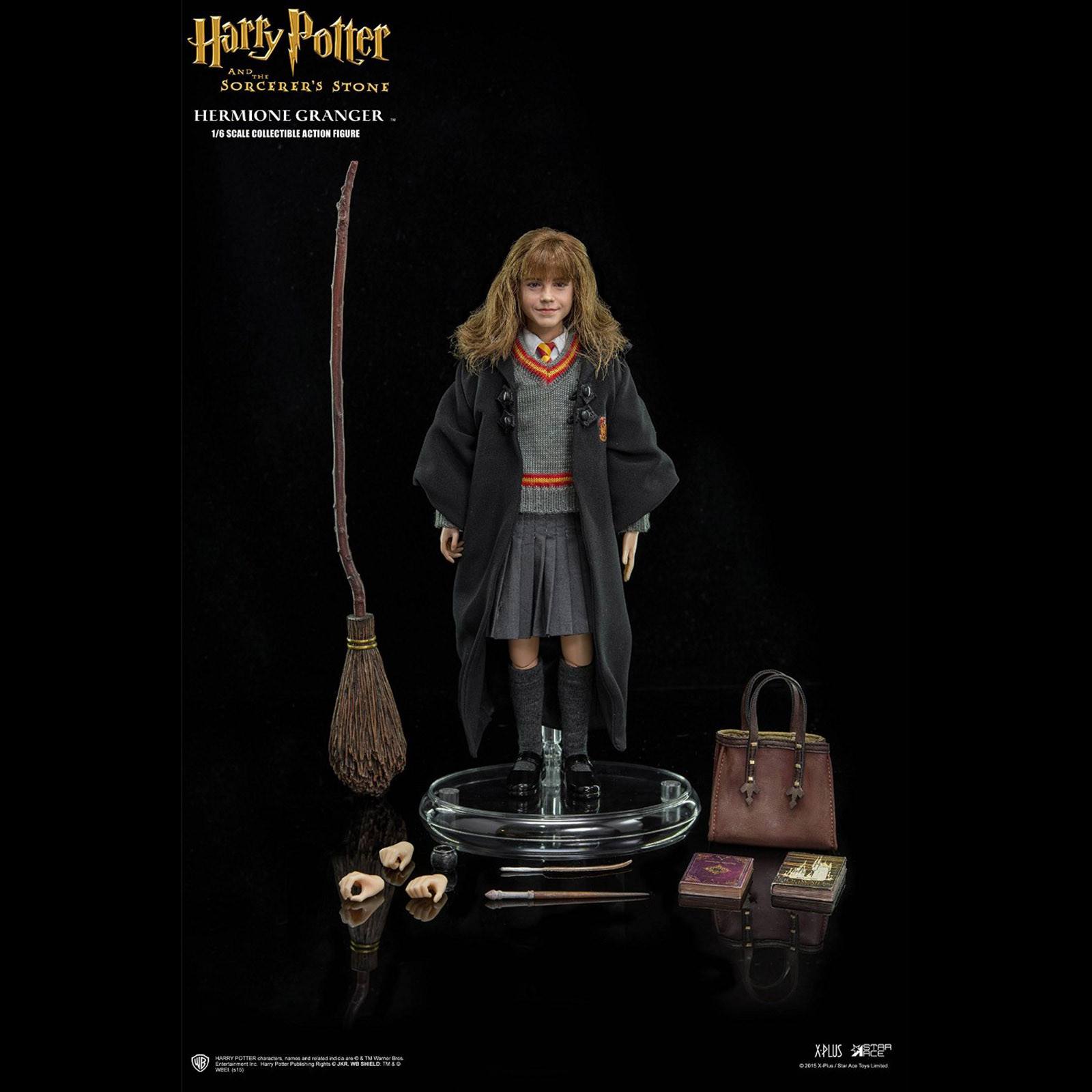 Star Ace Toys makes some of the best figures in the business. This particular Hermione figure is modeled after her appearance in The Sorcerer's Stone. She stands around 10 inches tall and features 30 points of articulation. It comes with many interchangeable accessories including wand, broomstick, two books, writing quill, and a bottle of ink.