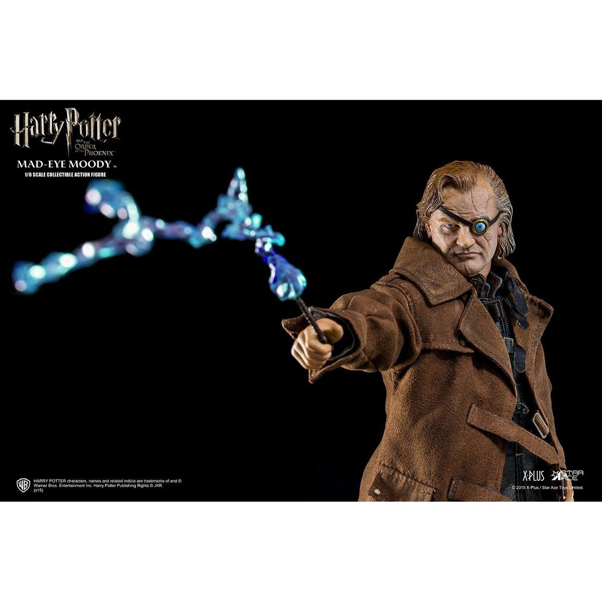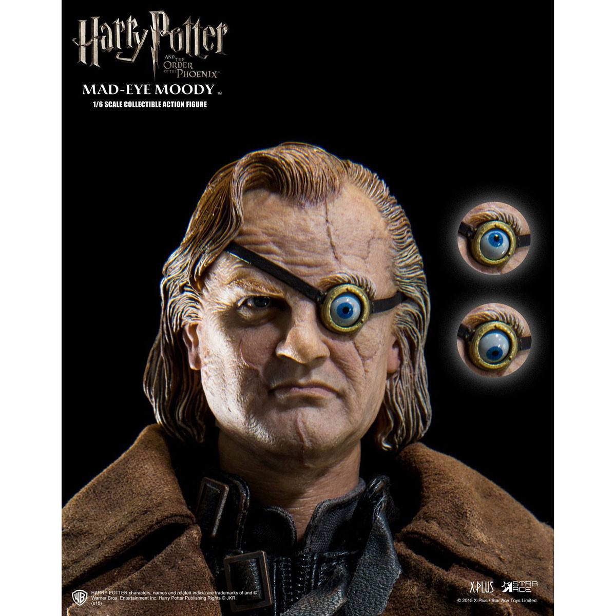 This is a Harry Potter Order Of The Phoenix Mad-Eye Moody 1/6 Scale Action Figure that is produced by the good folks over at Star Ace Toys. This is definitively a high-end collectible figure. Star Ace Toys makes some of the best figures in the business. This particular Moody figure is modeled after his appearance in the movie Order Of The Phoenix. He stands just under 10 inches tall and features 30 points of articulation. He also comes with interchangeable hands and accessories shown.