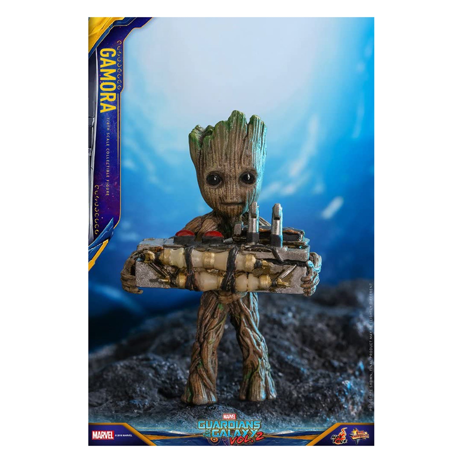 Expertly crafted based on the unique appearance of Guardians of the Galaxy Gamora in the MUC, the collectible figure stands approximately 11 inches tall and features a newly developed figure comes with her sword, dagger, and long rifle. 6 interchangeable hands, cloth shirt, chest armor plate, and baby Groot holding the bomb from the opening scene!