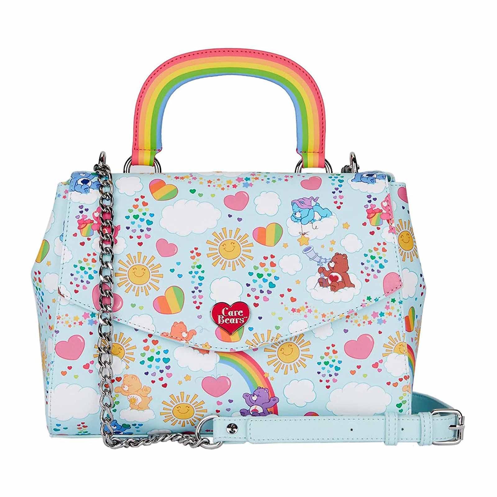 This is a Loungefly Care Bears Rainbow Handle Crossbody Bag Purse. Loungefly is well known for making high-quality accessories.