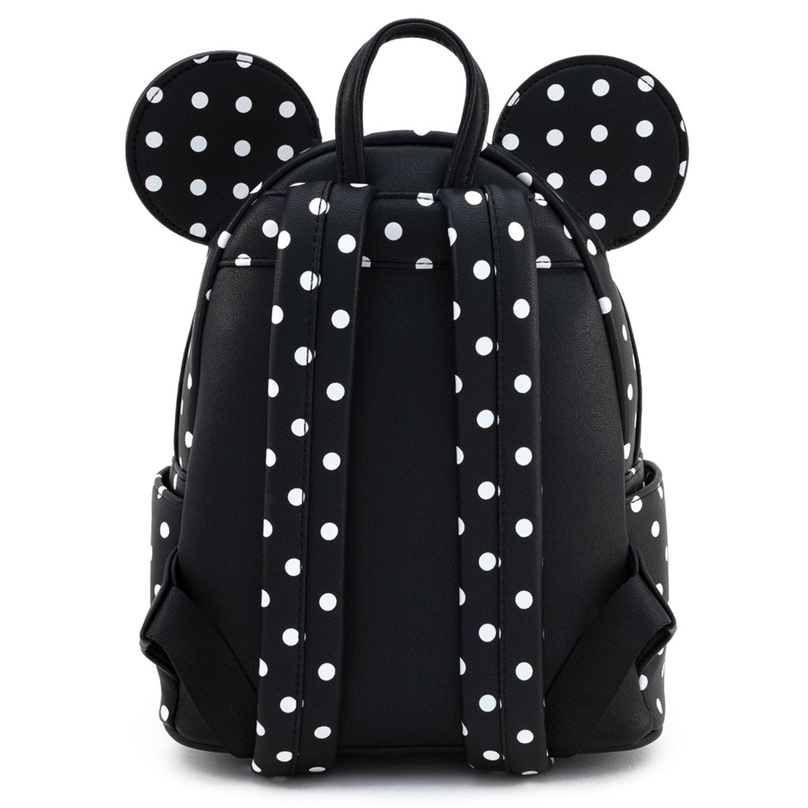 This is a Disney Minnie Mouse Black And White Polka Dot Mini Backpack made by the good people over at Loungefly. Loungefly is well known for making high quality accessories.