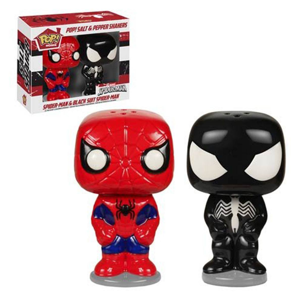 The Spiderman and Venom salt and pepper shakers are made of ceramic and are roughly 4 inches all. It's super cool to see that Funko stylized POP characters are making their way into home goods.