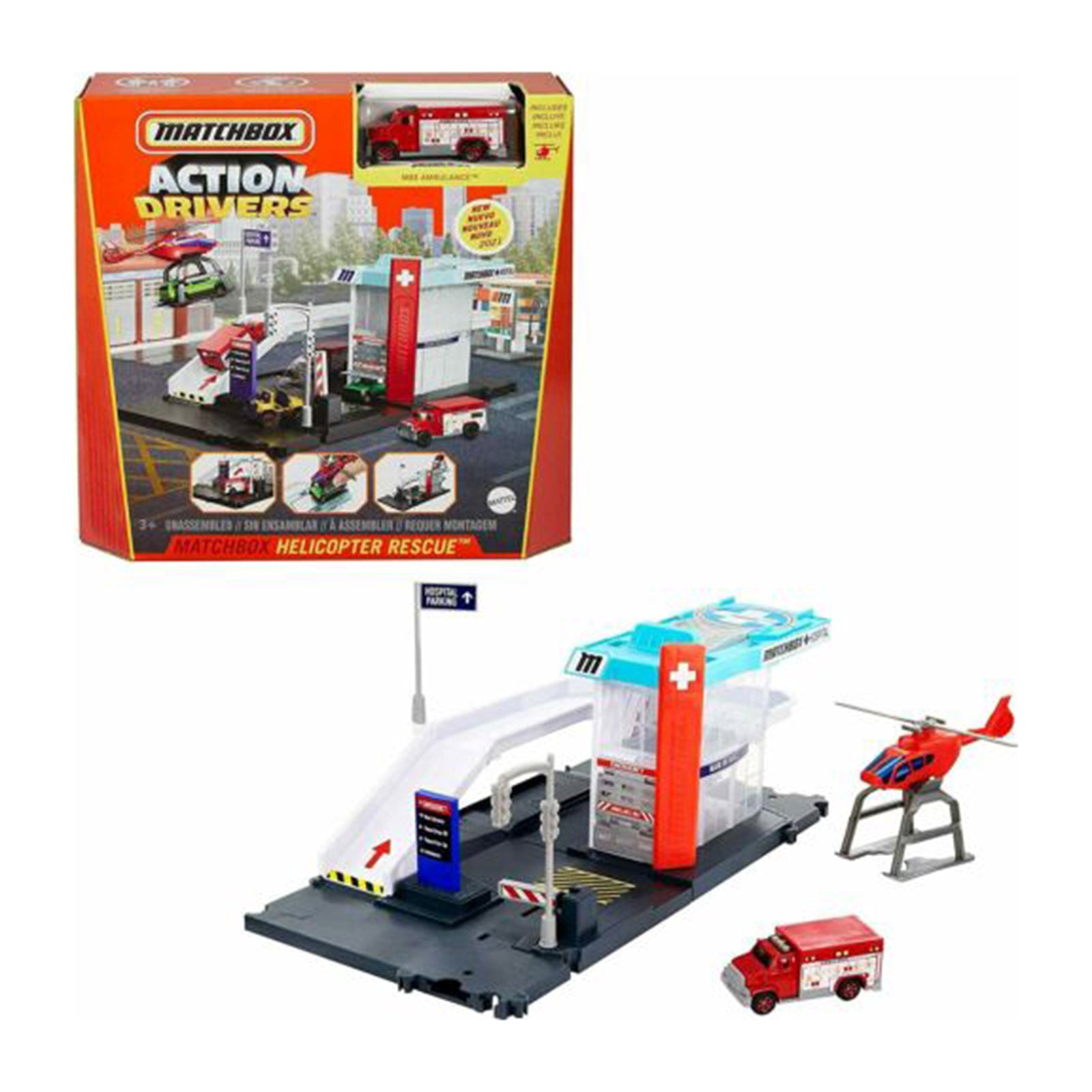 This is a Matchbox Action Drivers Helicopter Rescue Playset produced by the good folks over at Jada.