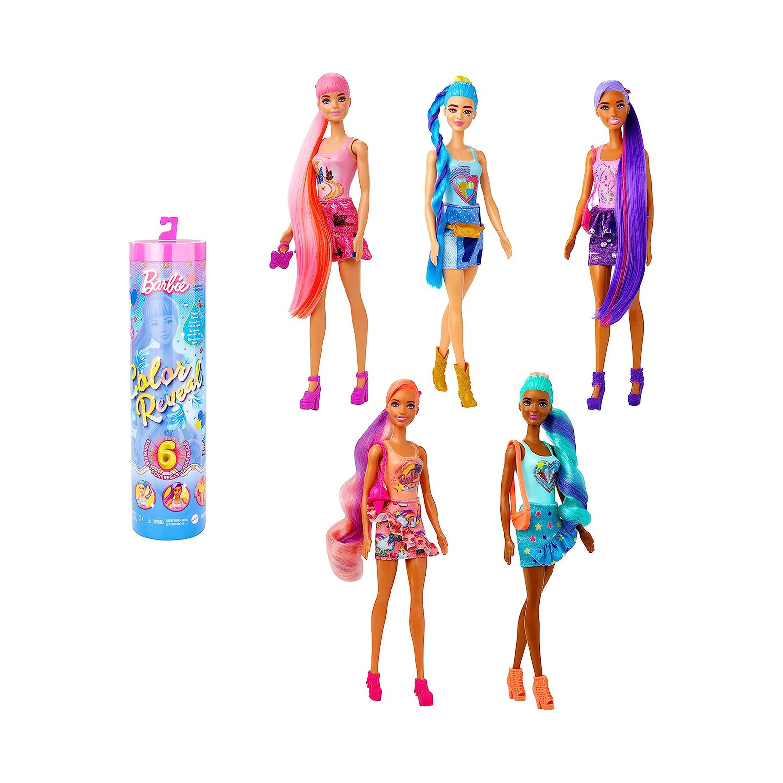 - With 6 surprises in 1 package, the Barbie® Color Reveal™ dolls deliver all kinds of delight -- kids will have fun revealing the Totally Denim™ Series with Original Color Reveal™ Innovation!