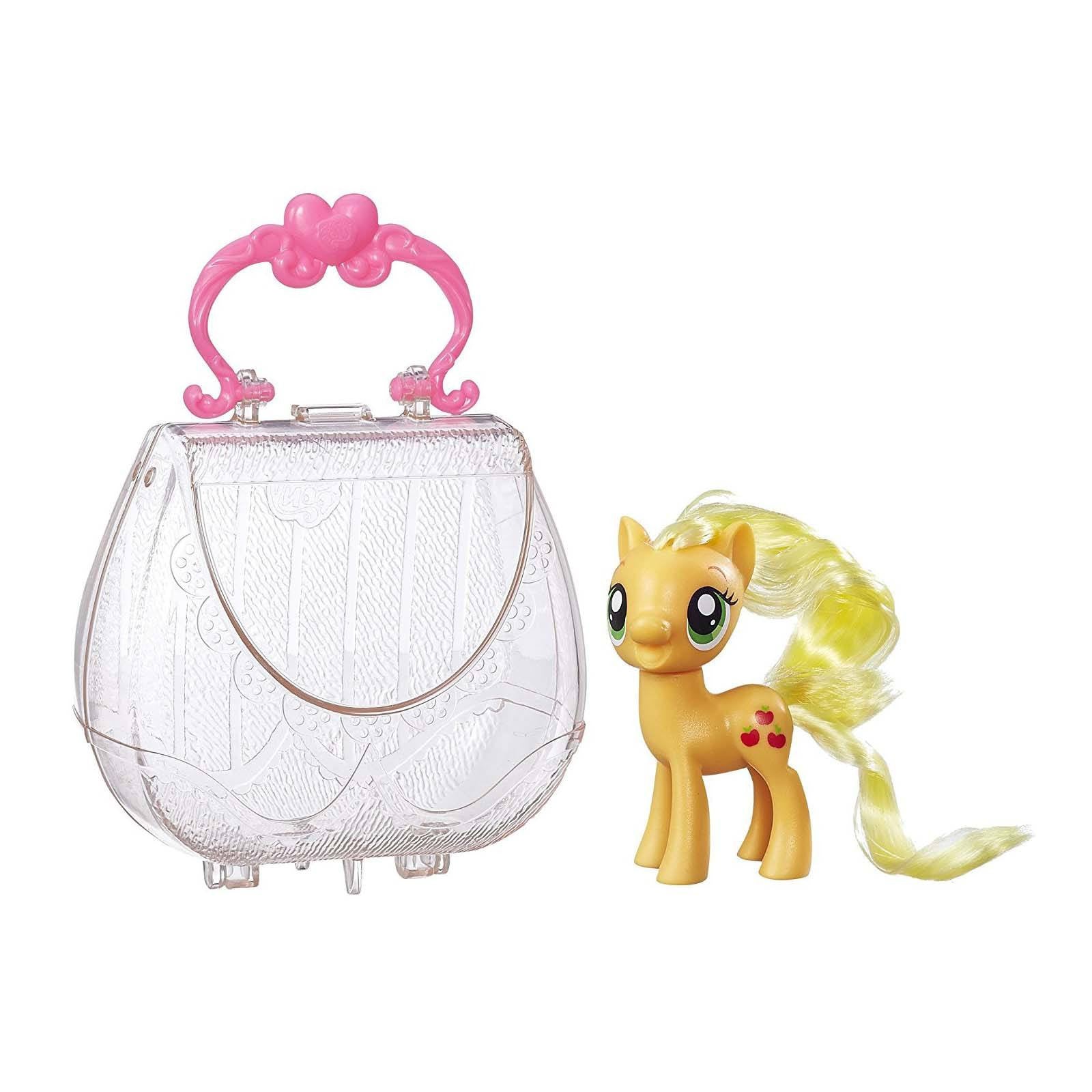 This is pretty neat! Applejack is roughly 3 inches tall and comes complete with clear carrying case. Cute!