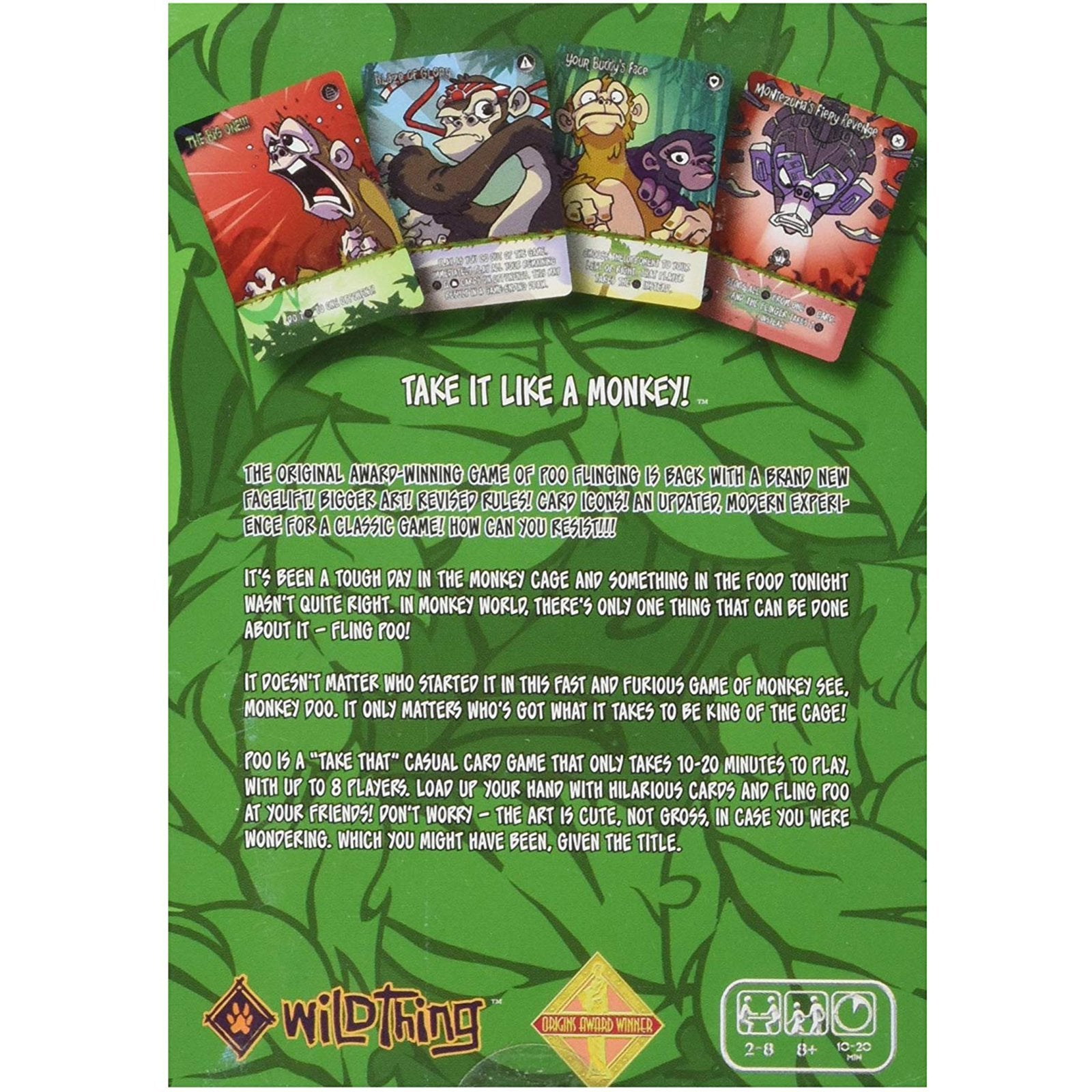 The original award-winning game of Poo flinging is back with a brand new facelift! Bigger art! Revised Rules! Card Icons! Updated, modern experience for a classic game! How can you resist!!!