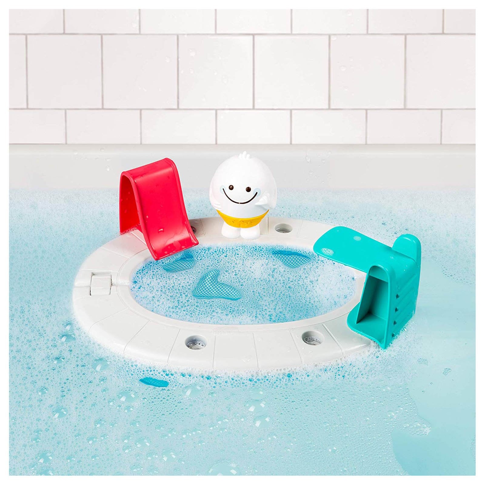 This pool party set converts into a mesh bag for storing all the parts or travel. The set comes with a yeti figure that can squirt water, a slide and a diving board!