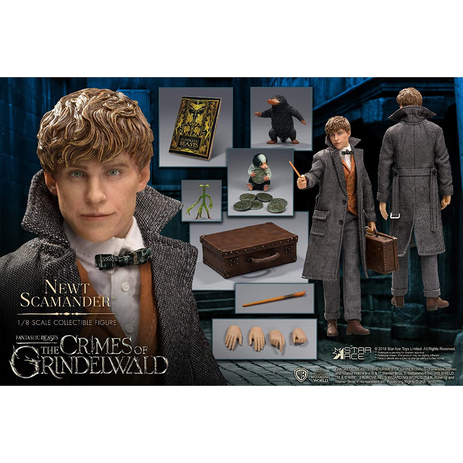 This is a Fantastic Beasts Crimes Grindelwald Newt Scamander Action Figure produced by Star Ace Toys. This is a top-tier high end collectible figure. It's amazingly detailed and exactly what you'd expect in terms of quality from Star Ace Toys. This is a figure for the ultimate Harry Potter fan.