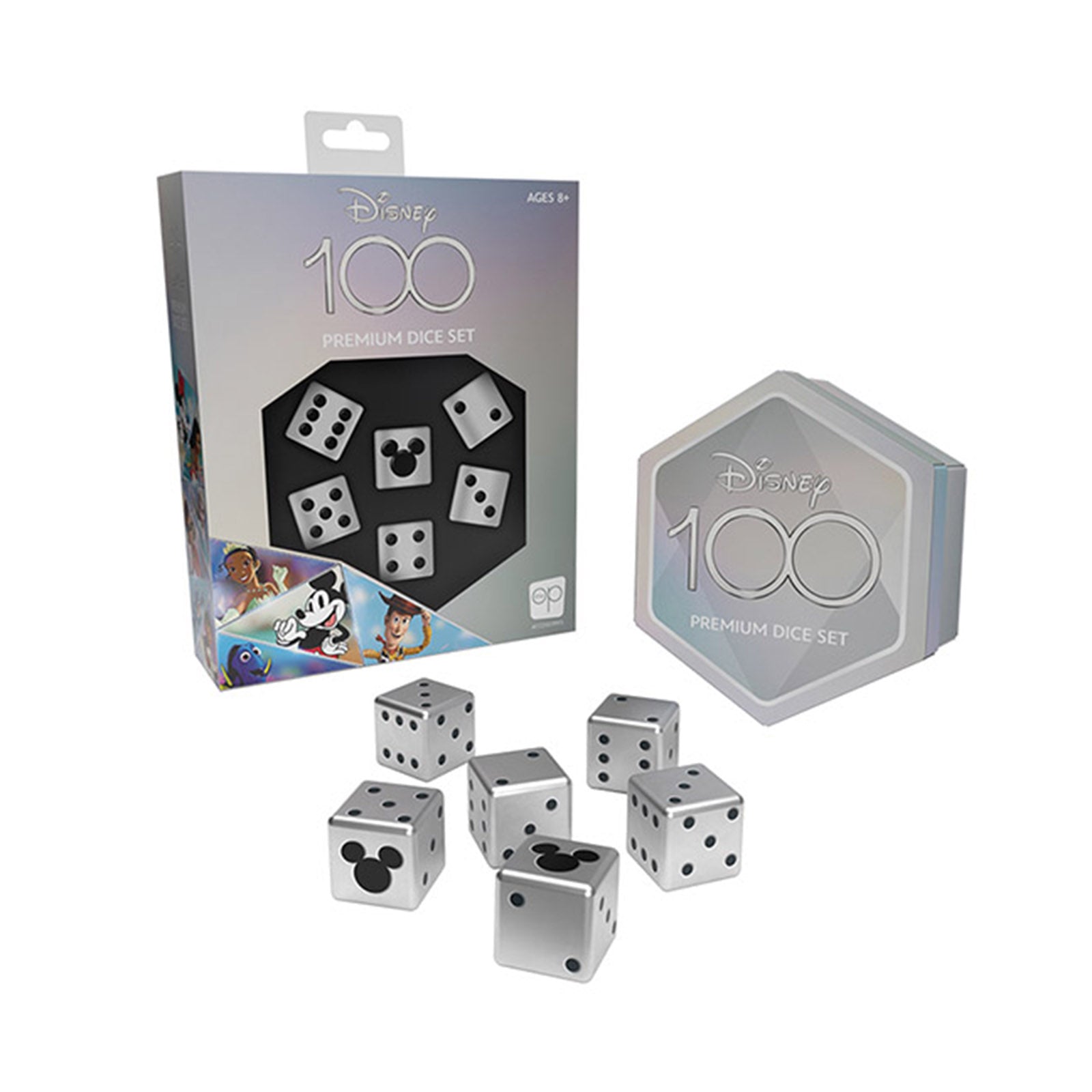 The USAopoly Disney 100 Premium 6d6 Metal Dice Set includes: