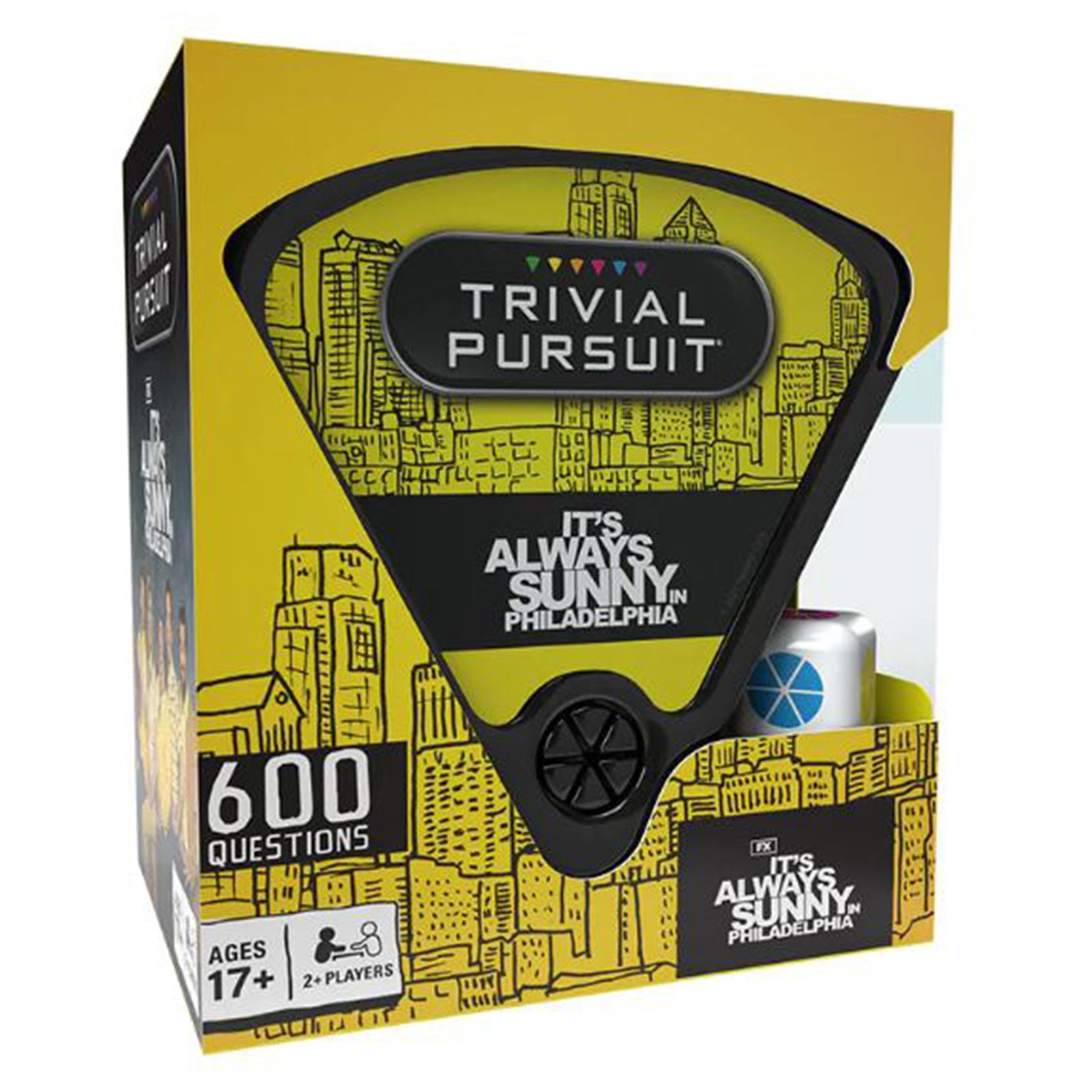 The USAopoly Trivial Pursuit It's Always Sunny In Philadelphia is a board game that combines the classic Trivial Pursuit gameplay with questions and trivia based on the popular TV show "It's Always Sunny In Philadelphia."