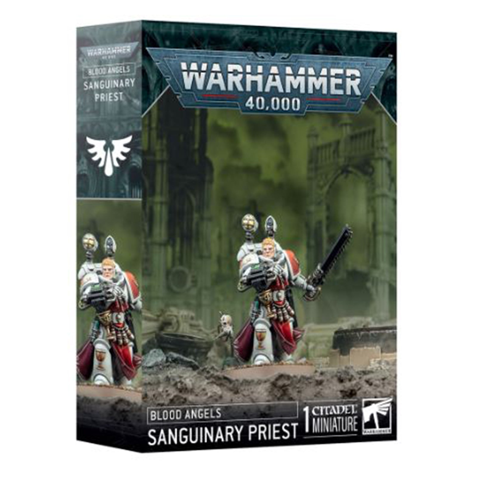 Assemble your own Blood Angels Sanguinary Priest, a vital support character within the Warhammer 40,000 universe