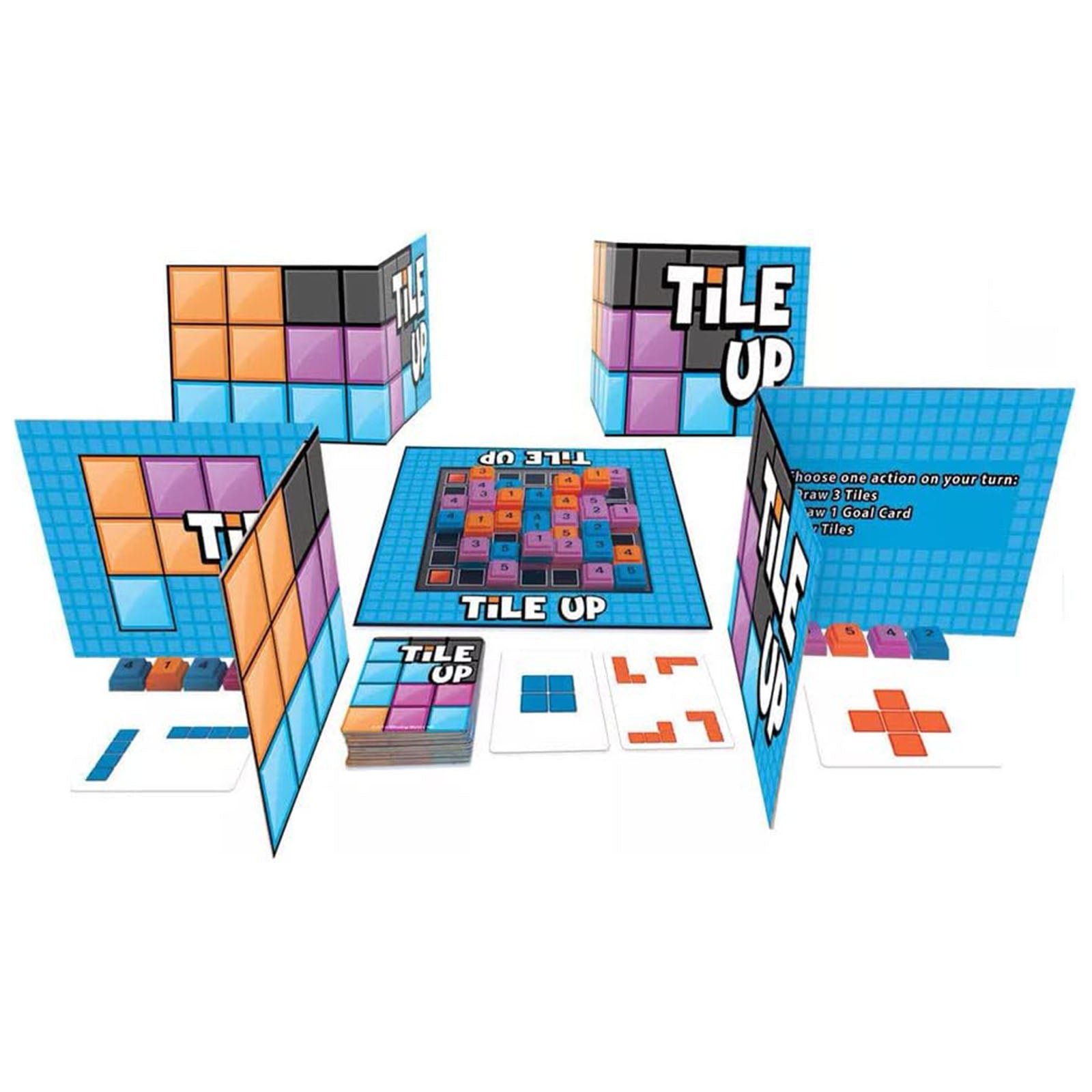 - Tile Up is a fiendishly clever strategy game. Players try to score points by creating shapes out of their tiles that match goal cards. Easy enough, right? Not so fast! You can only place tiles on top of other tiles if the two tiles are different colors and the tile on top has a lower number than the tiles it is covering. The player with the most points at the end of the game, when the four corners of the gameboard have been covered with tiles, wins!